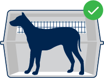The kennel must allow the animal to stand without their head or the tips of their ears touching the top of the kennel. | |